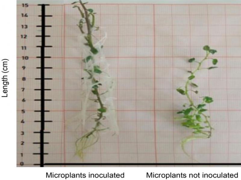 An additional response observed in potato microplants inoculated with strain A3 was the overgrowth of adventitious roots compared to non-inoculated plants (Fig. 4).
