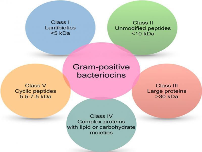 | Nisin | Lactococcus spp.,Streptococcus spp. | L. monocytogenes, Clostridium botulinum, S. mutans,L. innocua, S. aureus,S. pneumoniae, B. cereus | Dairy products, meat, seafood | (Juturu and Wu 2018) |
