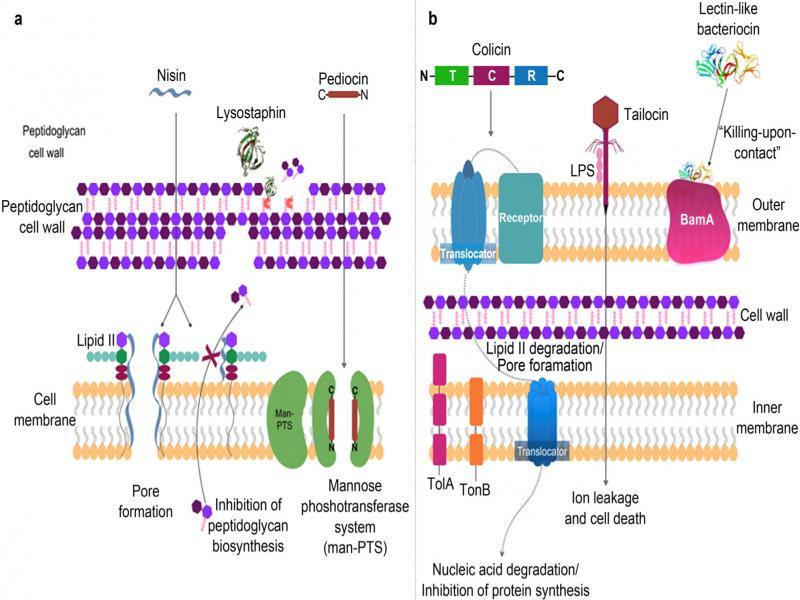 | Nisin A, Nisin Z, Nisaplin | L.lactis | S.mutans, S.aureus, E.faecalis,S.mastitis, C.albicans | Gastrointestinal, respiratory, and skin infections, oral health | (Shin et al. 2016) |