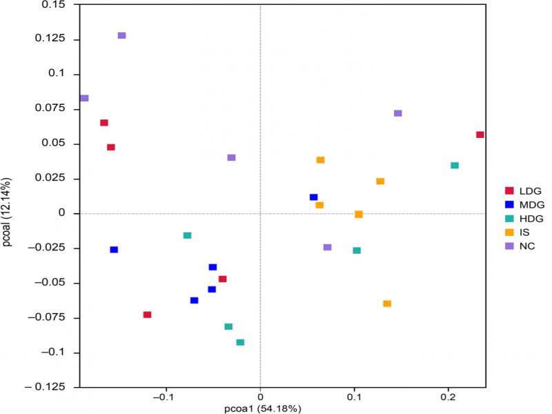 NC – control group, LDG – low-dose group, MDG – medium-dose group, HDG – high-dose group.