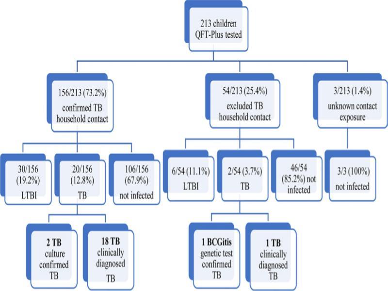 | Children n = 213 | QFT-Plus | TST | Bacteriological testsa | |||||||
