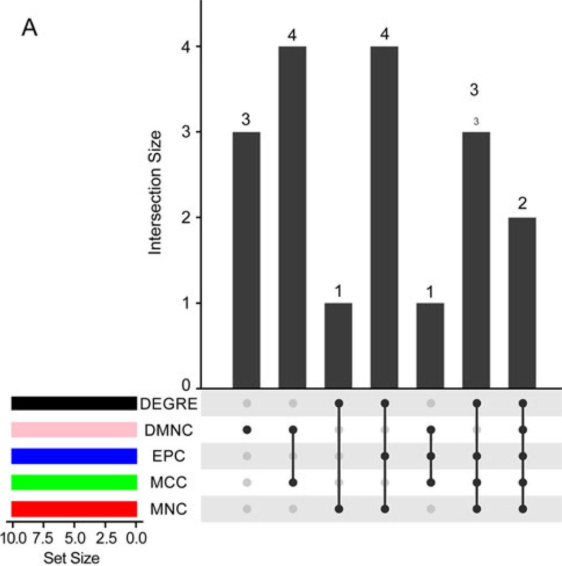 Top 10 hub genes obtained by five algorithms of the Cytohubba_ cytoHuba