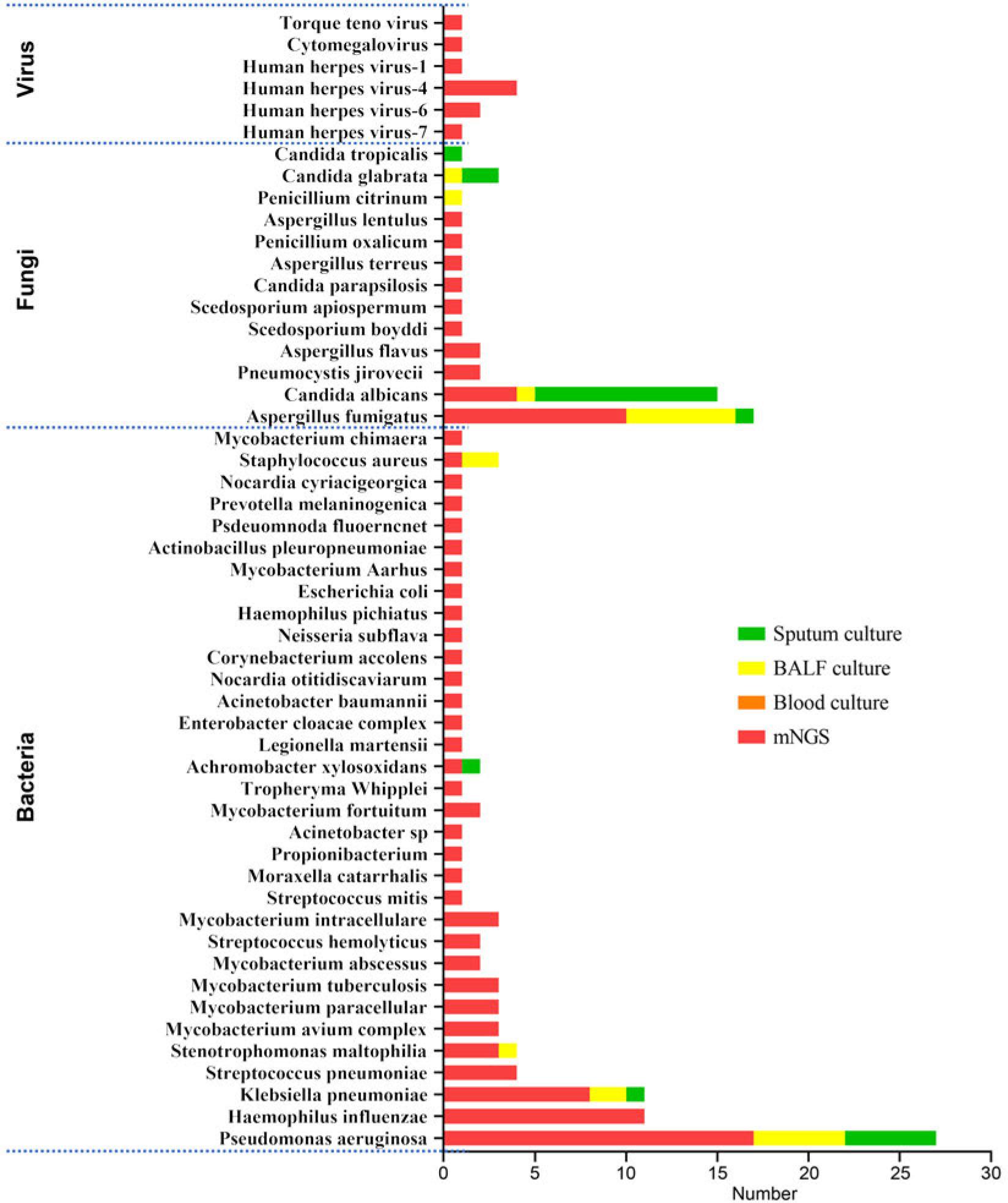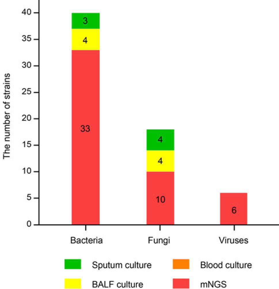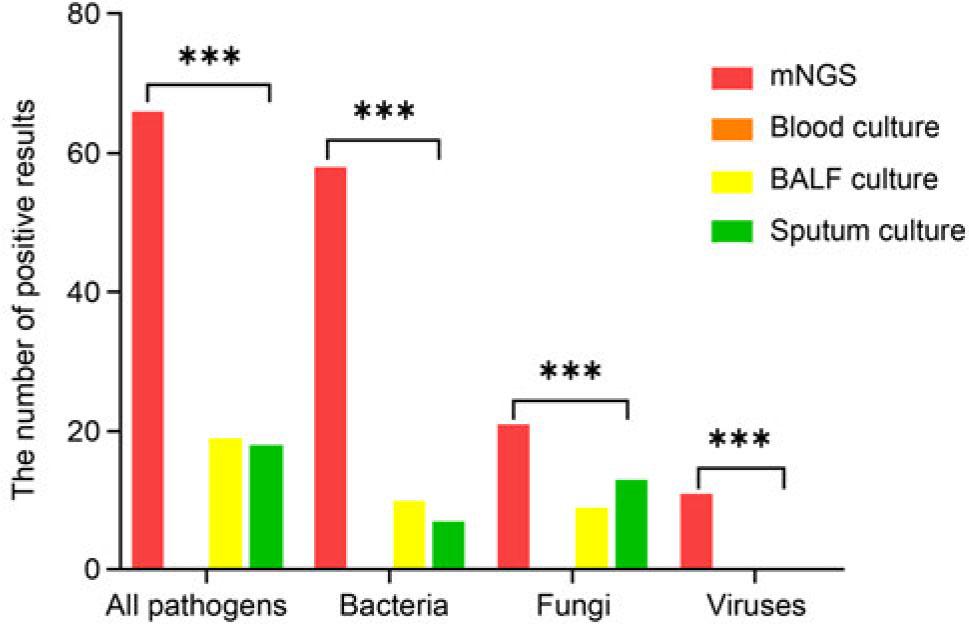 | Group | mNGS | Blood culture | BALF culture | Sputum culture | p-value |