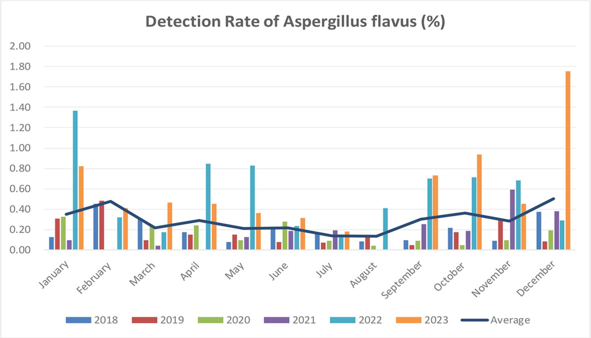 Distribution of Aspergillus flavus among infectious disease patients in different months.