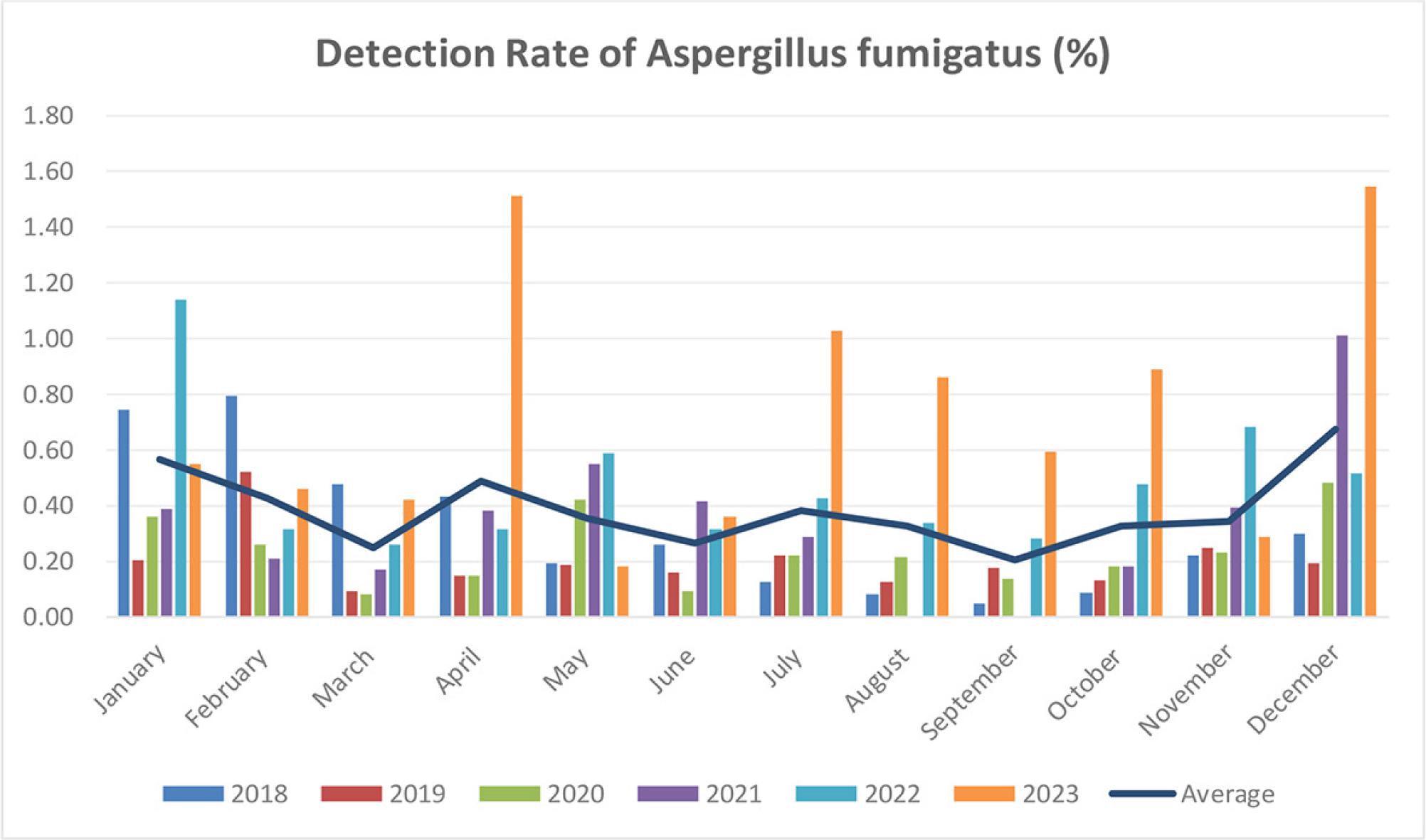 Distribution of Aspergillus fumigatus among infectious disease patients in different months.
