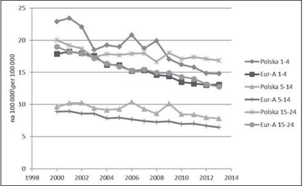| 1-4 lat 1-4 yrs | 5-14 lat 5-14 yrs | 15-24 lat 15-24 yrs | ||||