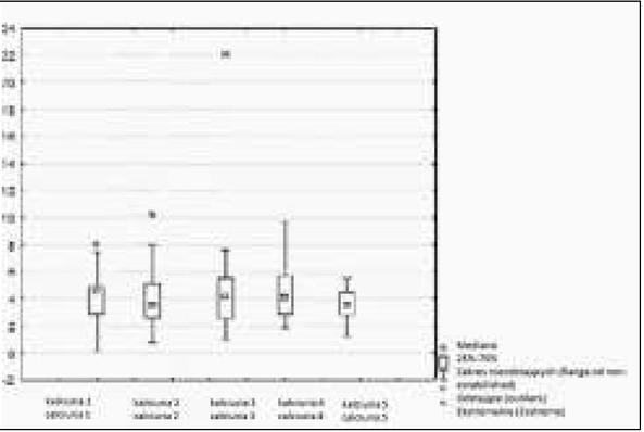 | Calciuria | 4.15 | 0.17-7.44 | 3.96 | 0.79-10.2 | 3.92 | 0.93-7.6 | 4.65 | 1.83 -7.78 | 3.57 | 1.24-5.54 | 0.61 |