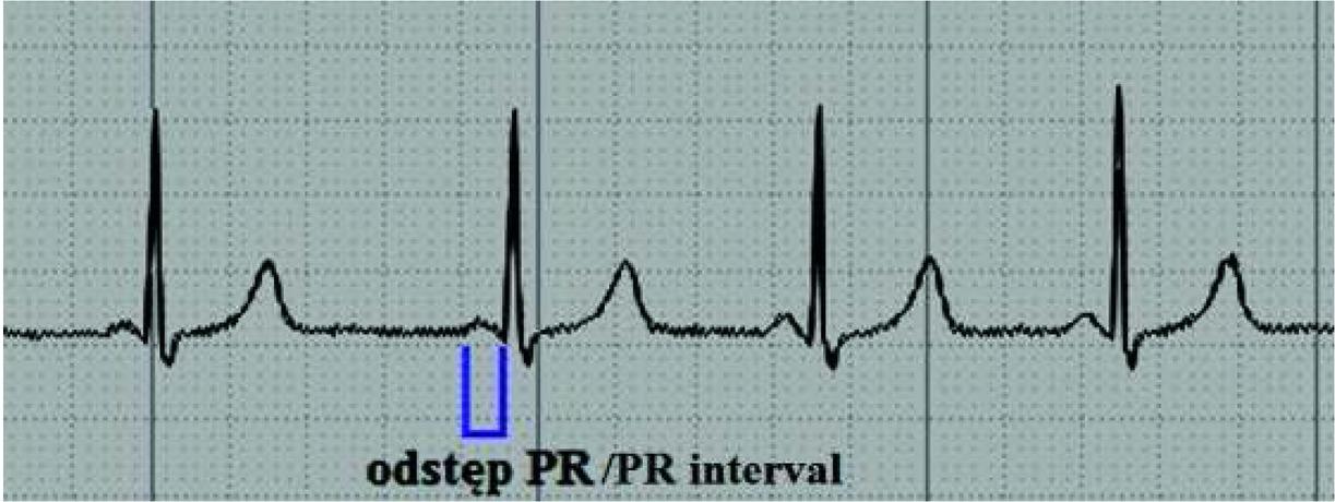 Fragment zapisu EKG przedstawiający skrócony odstęp PR w zespole LGL. [Sindrome de Wolff-Parkinson-White. [image on the Internet] .[stan z 12.03.2014] http://www.my-ekg.com/arritmias-cardiacas/sindromes-preexcitacion.html]