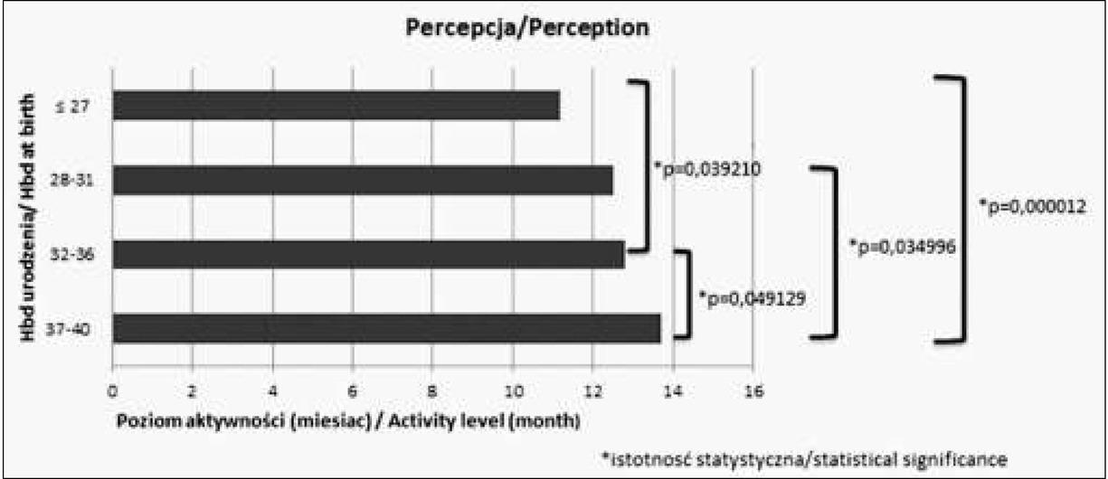 | Percepcja Perception | 12,4 | ± 1,4miesiąca ± 1,4 month | 13,7 | ± 0,8 miesiąca ±0,8 month | |
