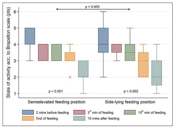 | Analyzed factor | Feeding position | Statistical parameters | Level of statistical | |||