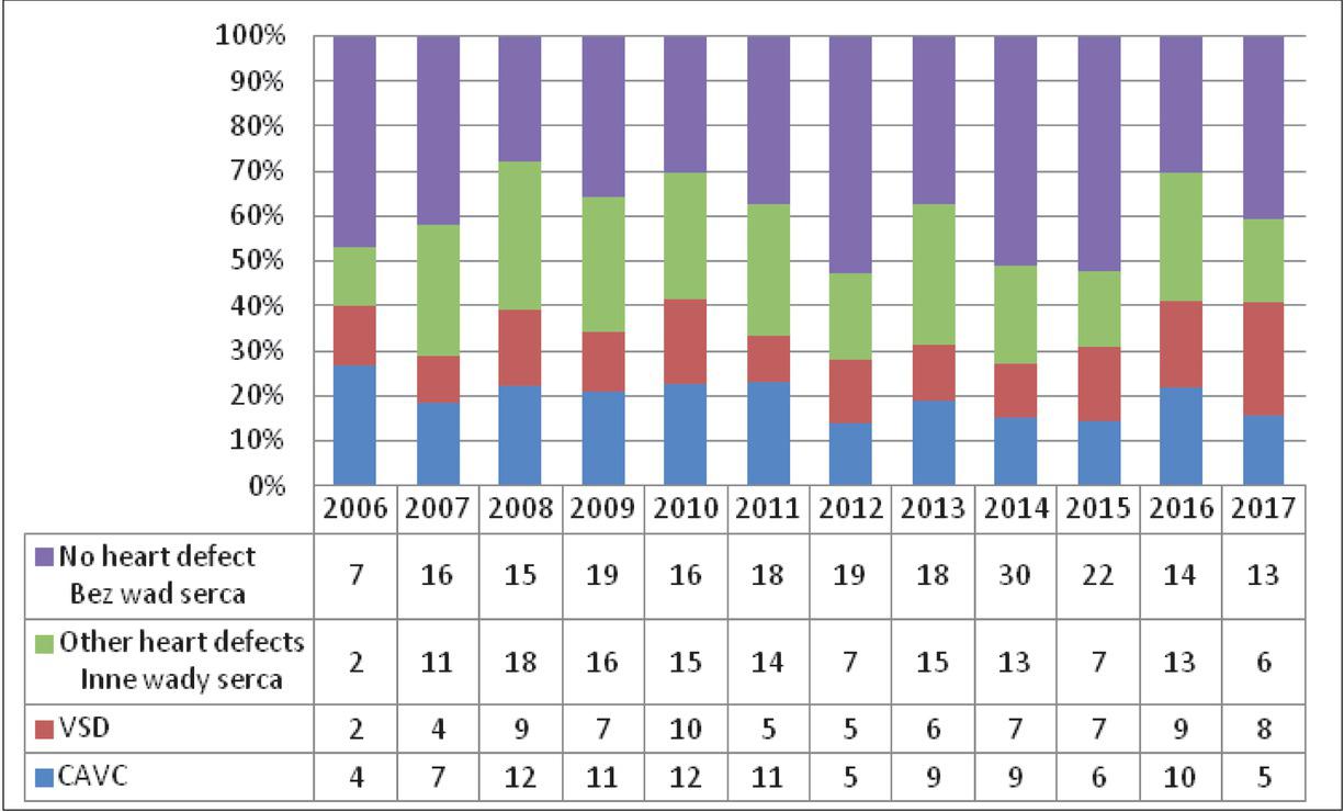 Specific heart defects in the studied group of patients and in the historical cohort described by Malec et al_Tabela I_ Specyfika wad serca w badanej grupie pacjentów i w grupie opisanej przez Malec i wsp_
