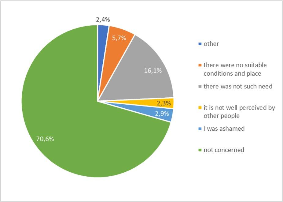 Frequency of breastfeeding in a public place by the surveyed women by criticism phenomenon (p = 0,073)