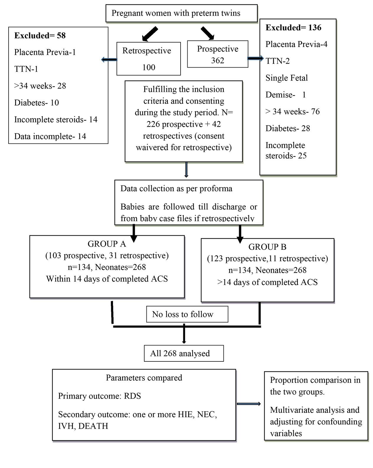 | CHORIONICITY | Monochorionic (n=58) | 26(19.40%) | 32(23.88%) | 0.373 (𝑥2 =0.79) |