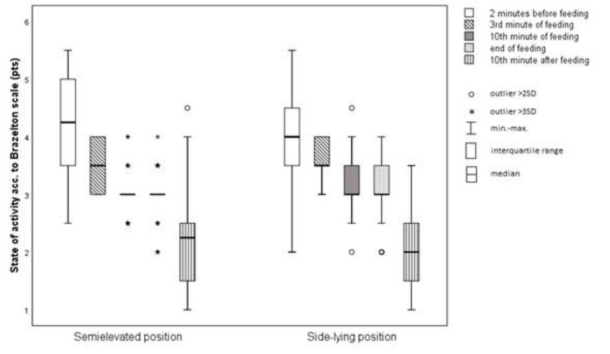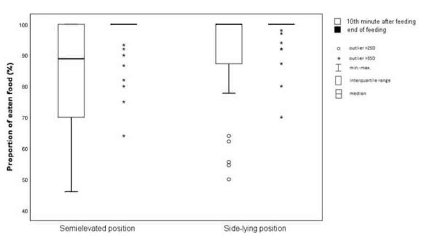 Comparative table of feeding times and feeding sessions between the semielevated and side-lying positions