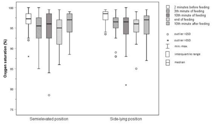 Comparison of the periods of saturation declines to ≤85% level between the semielevated and side-lying positions