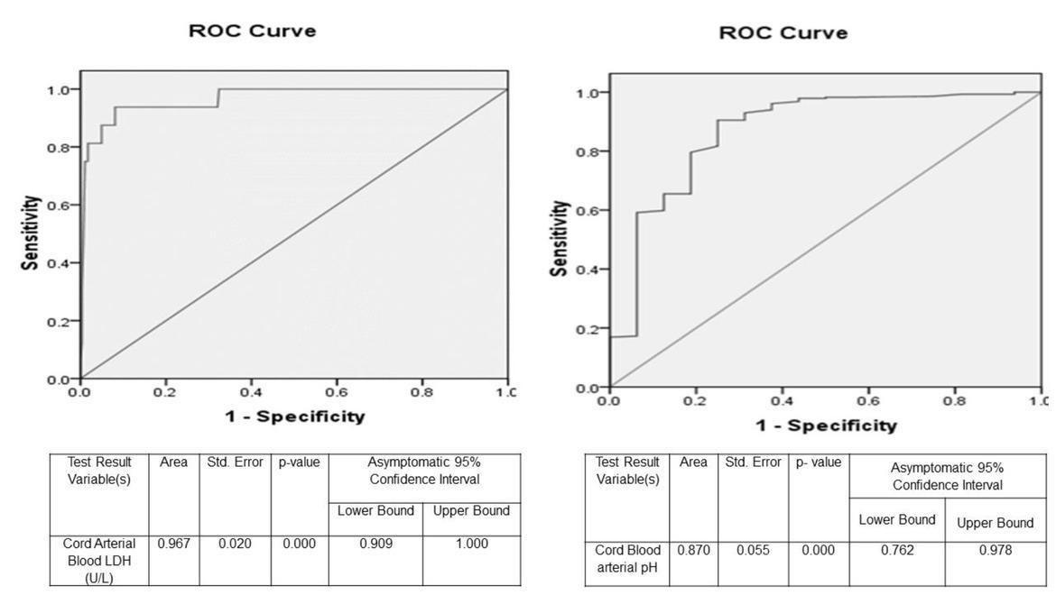 Association between umbilical cord arterial blood pH, lactate dehydrogenase levels and overall neonatal outcome