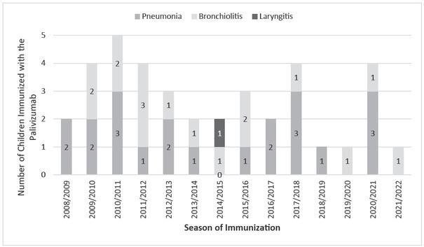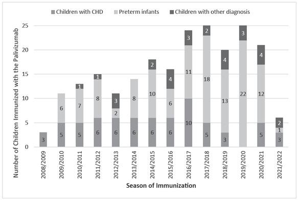 | Preterm infants with a GA >29<32 weeks (< 6 months of the RSV season with *individual risk factors | 2 | Discharged in the period from November 1 to March 31 | 1 |
