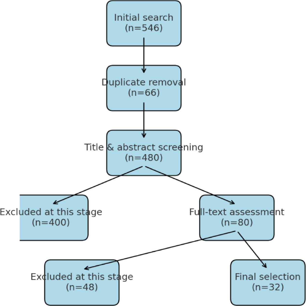 This review critically analyses recent advances in the field of preterm birth prediction (PTB) based on a comprehensive and methodologically sound literature search. The search was conducted in NCBI (PubMed), Scopus, Medline, and Google Scholar, covering publications from 2019 to 2024. Logical operators and MeSH terms were used to ensure the accuracy and reproducibility of the search. In particular, the search queries were: PubMed: (“premature birth” [Grid] And “forecasting” [All fields]) AND (“machine learning”, OR “biomarker profiling”, OR “genetic analysis”) Scopus: THE NAME IS ABS-KEY (“premature birth” And “forecasting” And (“artificial intelligence” OR “biomarkers”)) Medline: (“premature birth” And “prognosis” And “cervical length measurement”) AND (“risk factors” OR “biomarkers”) Google Scholar: “the prognosis of premature birth” + “artificial intelligence” + “biomarkers” Strict inclusion and exclusion criteria were followed during the research selection process. A careful selection was carried out from the extensive initial list of articles to identify the most relevant and high-quality studies (n=546). The large volume of publications reflects the breadth of research in the field of PTB forecasting. After deleting 66 duplicates, 480 articles were checked by title and annotation. At this stage, 400 articles were excluded due to inconsistent PTB forecast, focus on unrelated results, or lack of methodological detail. The most common reasons for exclusion were articles on therapeutic interventions without predictive models, conference abstracts without a complete methodological description, and research beyond the review period. Subsequently, 80 full-text articles were subjected to detailed verification. Studies were excluded if they contained outdated methodologies, insufficient sample size, or excessive risk of bias. Ultimately, 32 papers were selected for inclusion due to their scientific rigor and direct contributions to developing PTB prediction models, with a particular focus on new technologies such as machine learning and biomarker profiling (Figure 1).