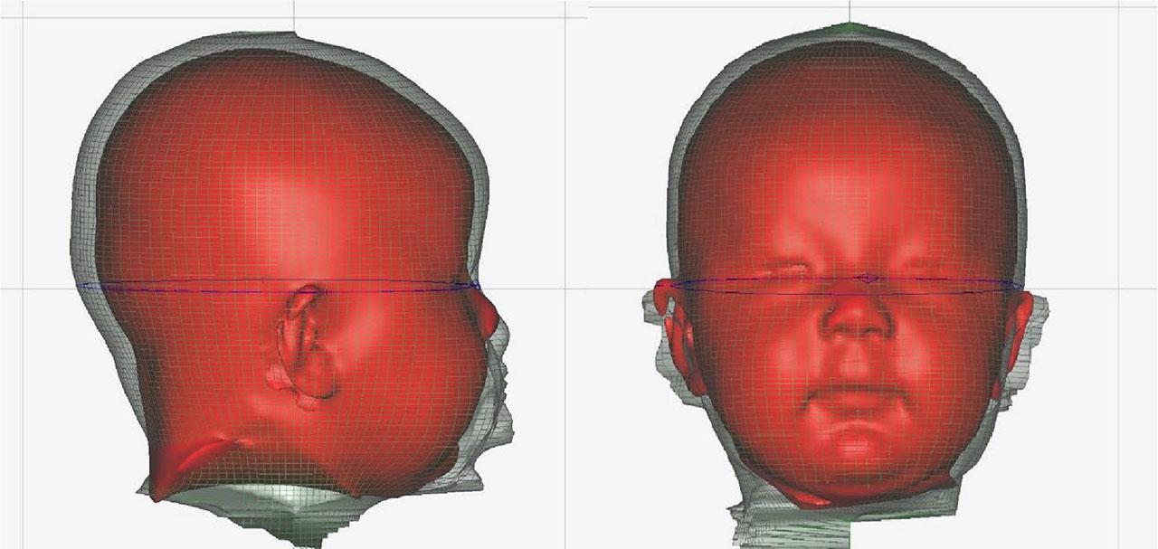 | Optical 3D scanning | Uses light technologies to create high-precision three-dimensional models of the skull surface. Fast and safe method for evaluating external deformations. |