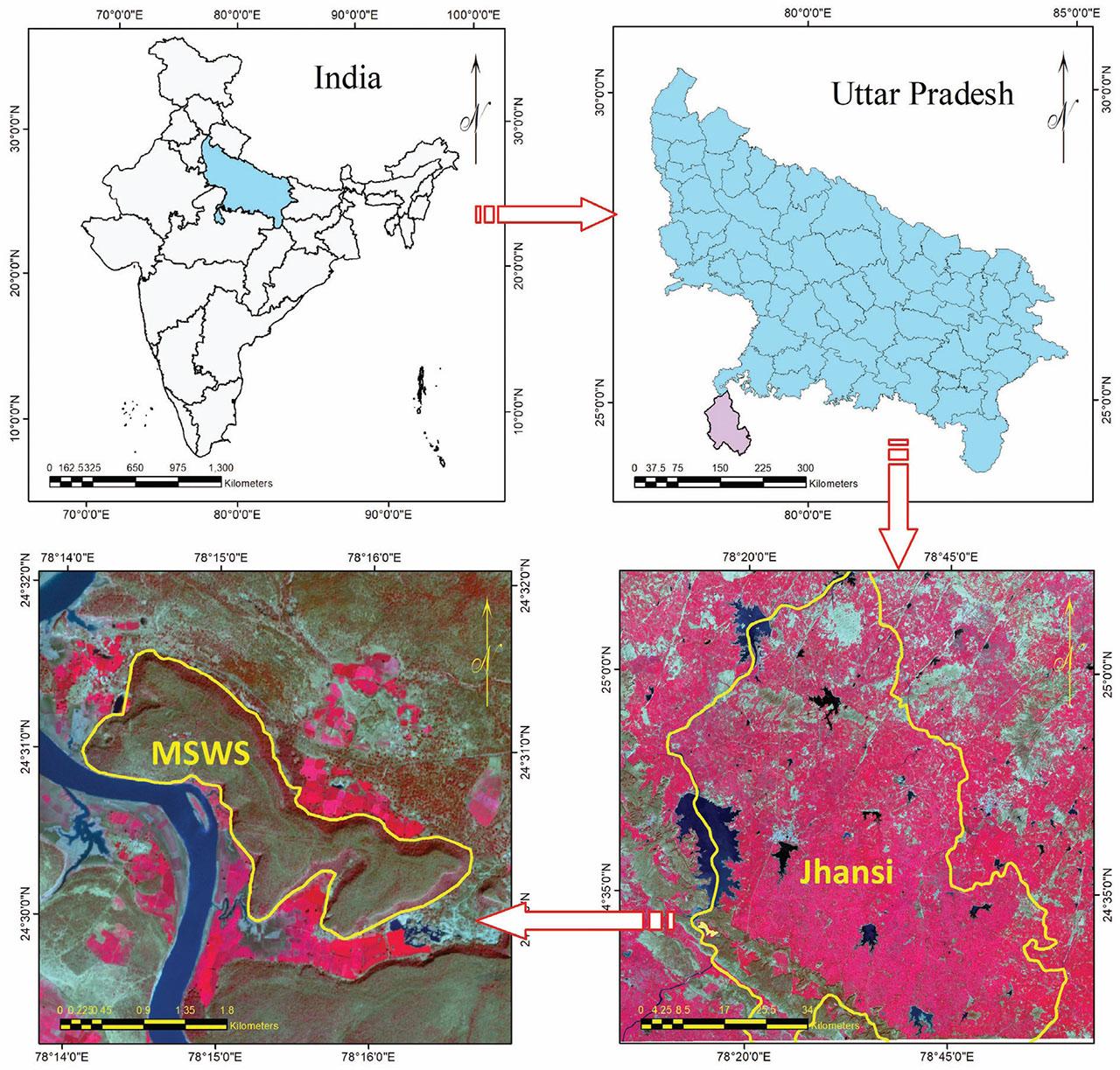 Field measurements, GeoEye-I and Pleiades-1A images were used to estimate above-ground biomass and total carbon stock. Six vegetation indices, namely ratio vegetation index (RVI), normalized difference vegetation index (NDVI), normalized difference greenness index (NDGI), vegetation index number (VIN) and transformed vegetation index (TVI) were used to estimate the carbon stock and biomass of the forest. Log-log, linear and semi log models were used to determine the appropriate indices for biomass estimation. They found that the applied methodology is suitable for accurate AGB estimation in a small region. Previous work on carbon assessment is based on elementary statistical studies and is less precise. Multi-temporal and spatial satellite databases with improved analytical algorithms have led to a reliable assessment of carbon and land use. Assessing the biomass of tree species is important to determine the structural aspect and conditions for their growth. The sustainability of forests also depends on the estimation of biomass. Therefore, allometric equations that consider morphological traits of forest species (tree height, crown diameter and DBH) are constructive in estimating forest biomass (Kebede & Soromessa, 2018). In this study, an attempt is made to collect data collection methods to assess forest management in Mahavir Swami Wildlife Sanctuary (MSWS), Lalitpur, UP, India using Sentinel-2A sensor data.