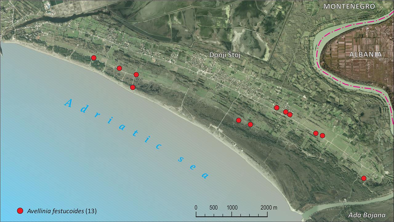 Distribution on Avellinia festucoides in Montenegro, in the hinterland of Velika plaža.
