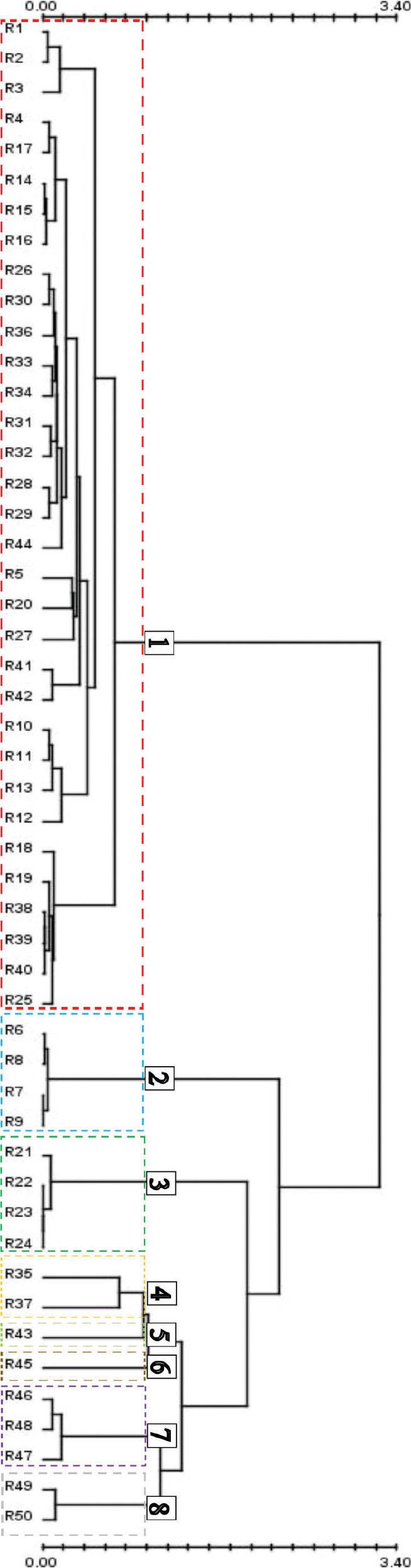| Group (cluster) | 1 | 2 | 3 | 4 | 5 | 6 | 7 | 8 |