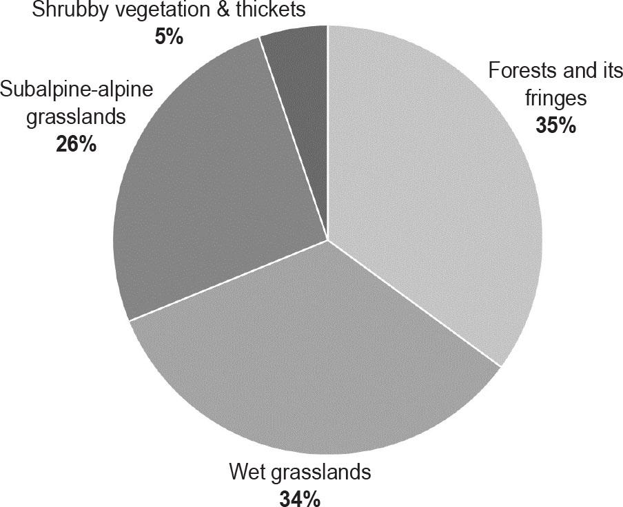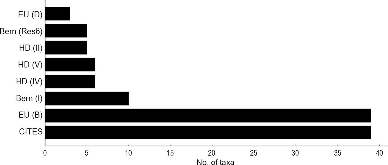 | 43 | Orchidaceae | Neottia nidus-avis (L.) Rich. | - | - | II | B | LC - | Infrastructure development, collection, habitat fragmentation, fires | Calcareous wetlands and clearings inside beech forests, conifer forests and mixed broad leaved forests | Malet e Mushtishtit, Ibër river banks (Mitrovicë) |