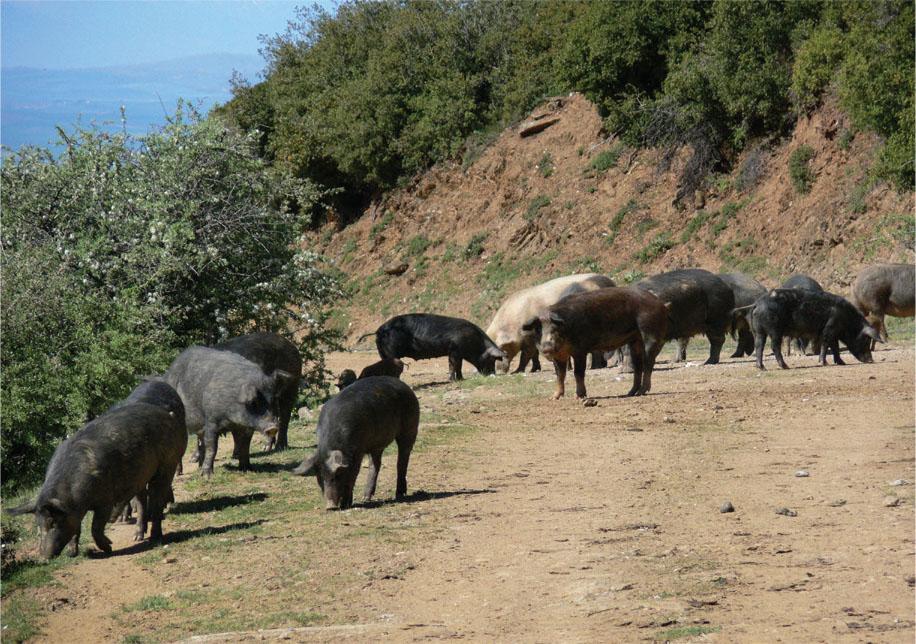 Slika 10: Udomačeni prašiči, na lokaciji Kalamaki v območju Larissa, ki se prosto pasejo.