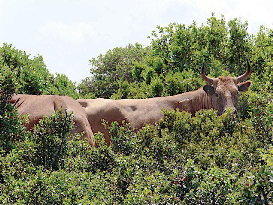 Besides feral pigs, we encountered herds of domesticated, free-range pigs, that similarly cause major damage to the ecosystem. We witnessed sizeable herds roaming unattended in the forest ecosystem (Figure 10).