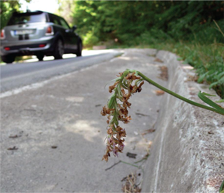 A different situation arises along the narrow, convoluted roads that connect the traditional villages of Pelion along the Aegean coast, such as from Zagora to Chorefto. There, the width of the pavement is just enough for two cars, and sometimes not even that. While in this case mowing of the road banks is unavoidable to maintain traffic safety, it should be delayed as much as possible, ideally after most orchids have set seed, and certainly not before 30 June.