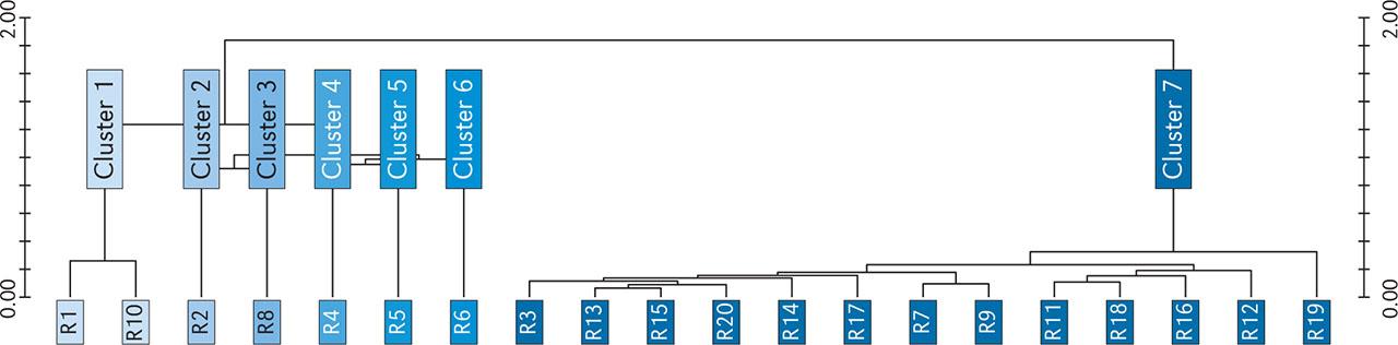 The dendrogram was made in the GINKGO software (Bouxin, 2005), and the optimal number of clusters was identified based on the average Silhouette index (Rousseeuw, 1987). The synoptic table was obtained from the Juice program version 7.1 (Tichý, 2002).