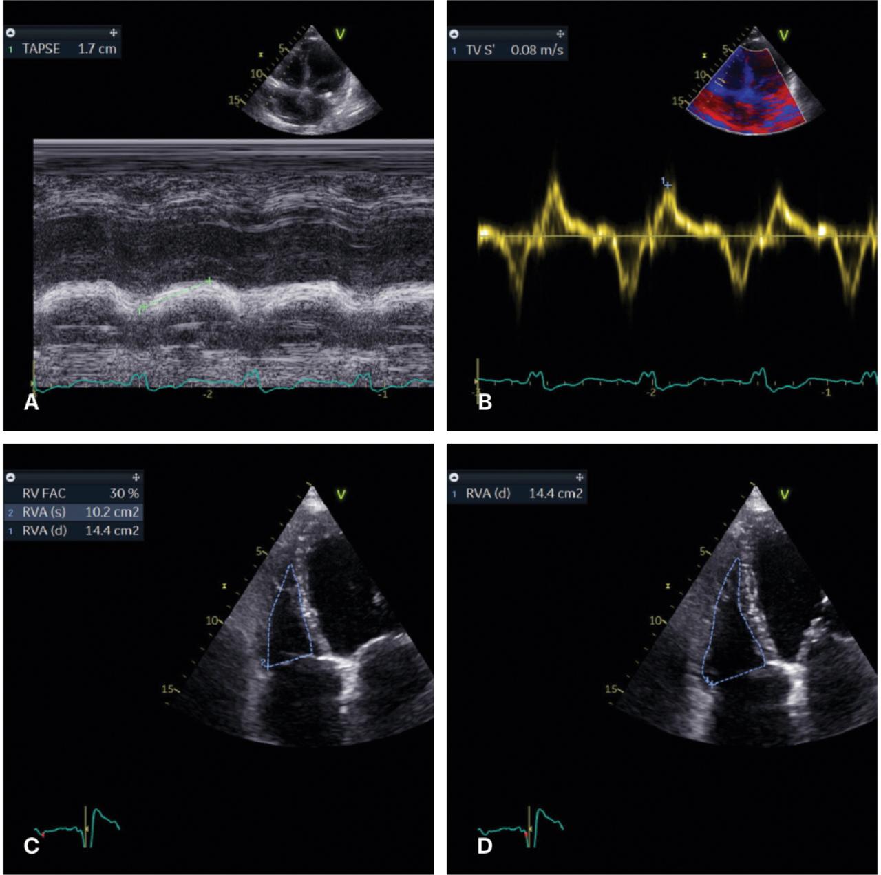 | Scuteri et al.27 | 44 | Echocardiography | RV FAC | No reduction after 6 months | 2009 |