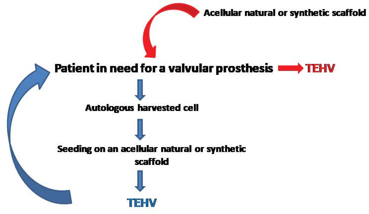 Resembling the histological architecture and the function of a native heart valve, Tissue Engineering of Heart Valves (TEHV) focuses on manufacturing a viable and functional heart valve, which doesn’t require anticoagulation therapy, is durable, biocompatible and doesn’t trigger an immune response8. Being a living tissue, TEHVs own their metabolisms with absence of degeneration, calcification and with ability to grow with the human body, targeted especially for the pediatric patients’ group, characterized by the requirement for multiple reoperations due to their growing organism9. Mimicking the native valve extracellular matrix (ECM) by using a temporary scaffold, cells, growth factors and bioreactor preconditioning10 TEHV represents the next valvular substitute generation.