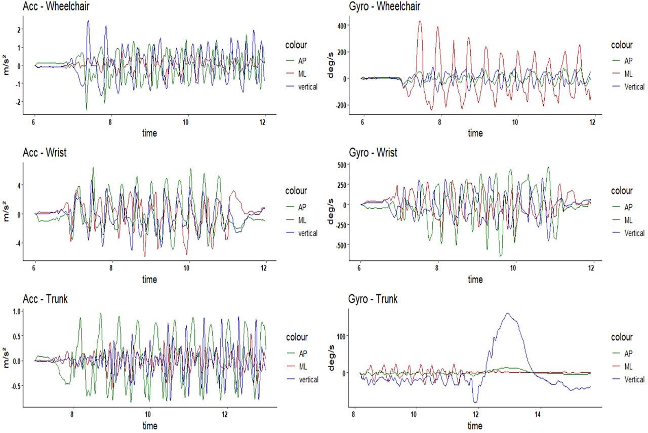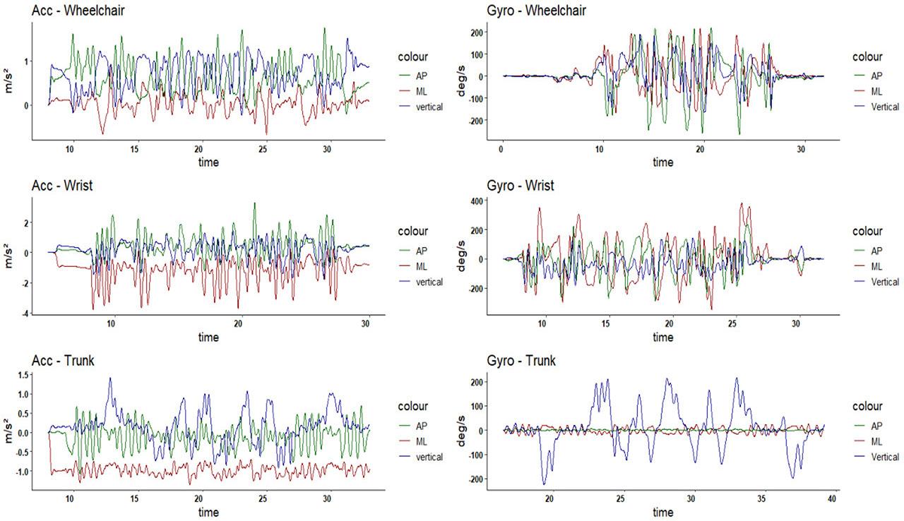 | Mean wheelchair angular velocity in the anteroposterior direction | 0.70 | 0.02 * |