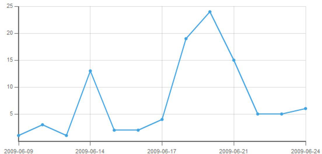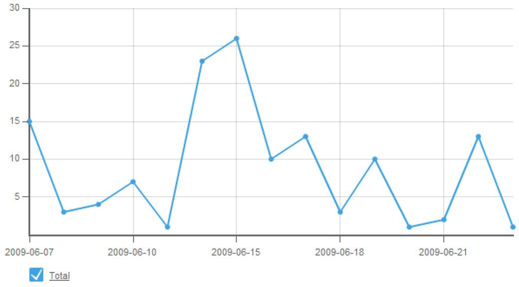 Figures 3 and 4 below show that participation over the duration of this event was also strongly influenced by email reminders. Votes and comments spiked significantly after the mid-point email sent on 16-06-09, albeit with a delayed response of about 24 hours. It is also worth noting that the commenting rate in particular stayed high in the second week of this event, which may be attributed to the effectiveness of the reminder email or to the characteristic behaviours of the group involved(2).