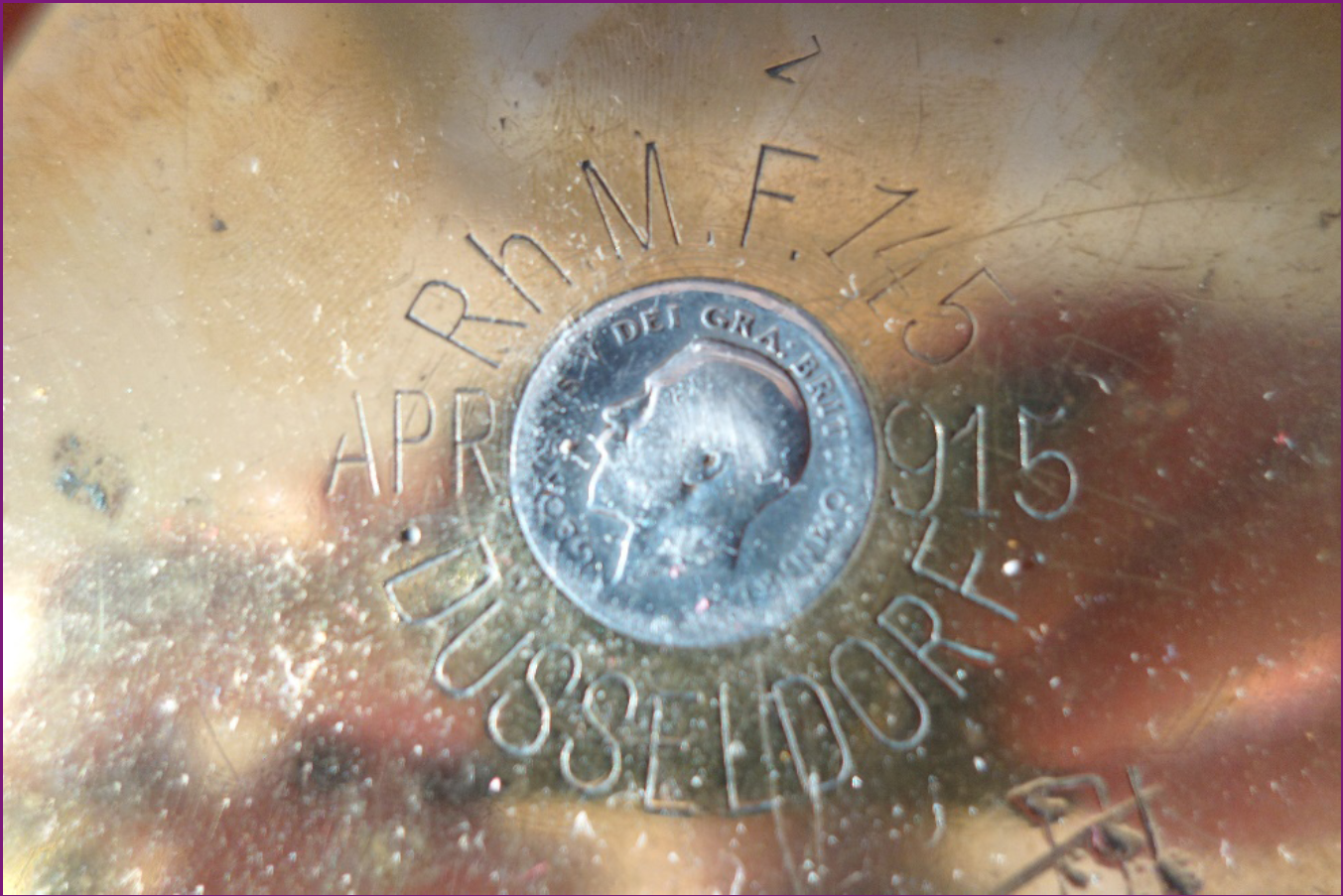 In fact, the only memorabilia I have of my Grandfather are ‘spoils of war’. He kept – over the fireplace – a set of murderous looking shells (which I now have), allegedly captured from the Turks and ‘proving’ that the enemy used ‘dum-dum’ rounds (lead-tipped, designed to flatten on impact). He also sported a collection of ‘trench art’, including shell-cases converted into cigarette boxes, powder-puff boxes etc., some with British silver sixpences (the king’s head) let into the base, overlaying the German or Turkish script that indicated whence the shells originated. One such is dated ‘APR 15’). There’s also a Turkish artillery shell fuse, and, had he not handed it in to the British Government in the 1950s during an amnesty, there would have been a captured Turkish revolver too. Instead, I have the amnesty receipt for it.
