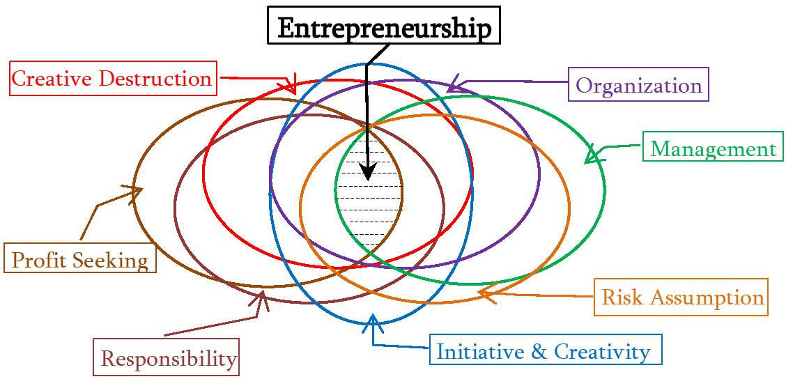 In short, as suggested by Baumol (1968 and 2010) initiative and creativity are defining characteristics of entrepreneurship in the sense that the other attributes of our Venn diagram above are either implied or else immaterial and thus not necessary.