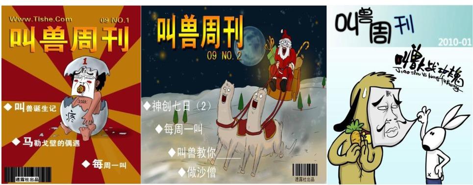 In the journal, Jiaoshou becomes a comic character born out of an egg, an omnipotent manga icon that spices his talk with profanity, fights all evils and ignores all established social norms. In issue three, it even fights Kongfu Bunny, a comic character created by Vincent, a lecturer and an anime professional at Communication University of China. The journal also incorporated new developments in Chinese cyberspace and commented on social issue through the comic Jiaoshou. On the cover page of the second issue, the two animals who are leading Santa Claus’s sleigh are not reindeers, but Grass-Mud-Horses, a legendary animal created by Internet users to mock government talk and vent frustration caused by censorship. (15)