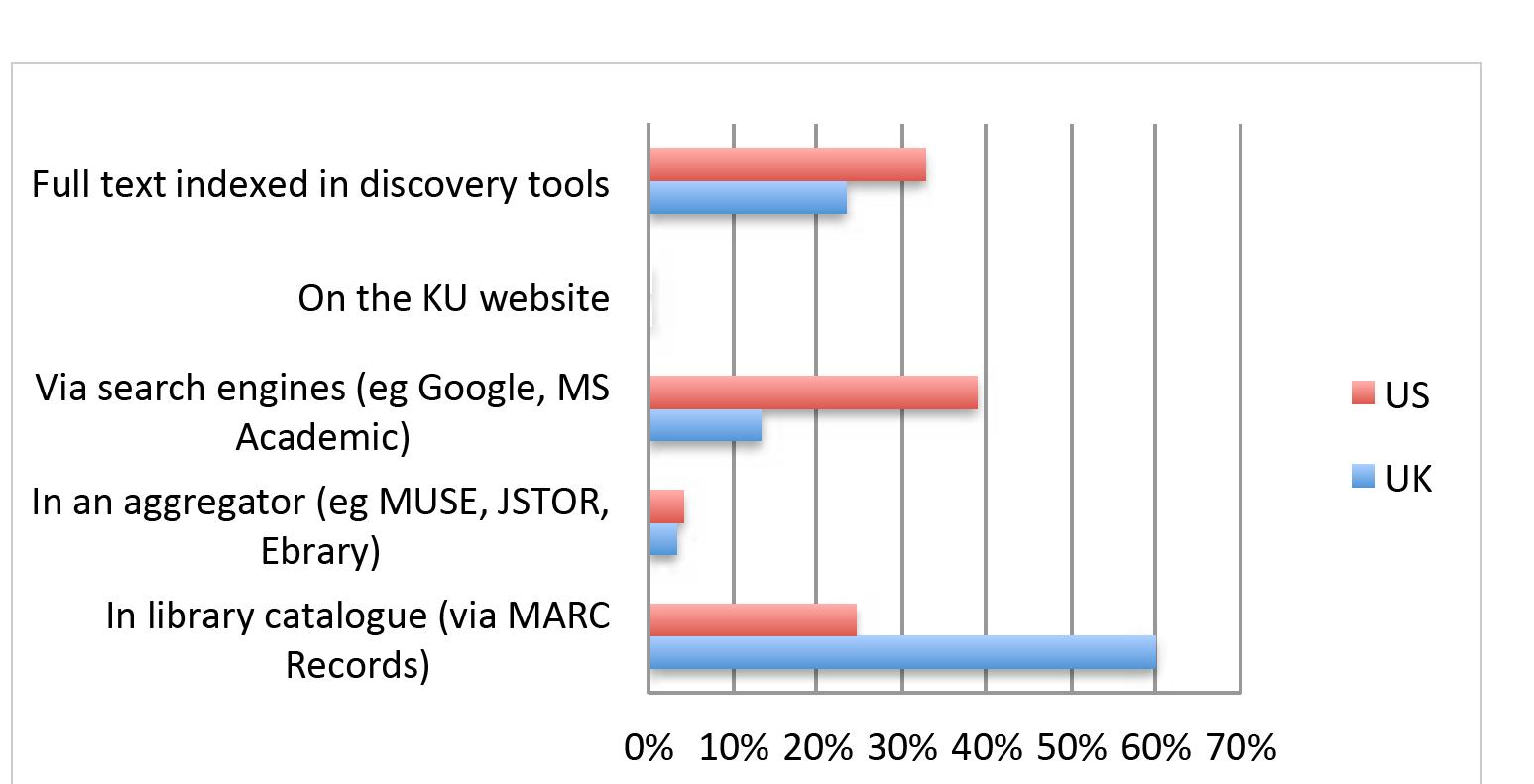 Publishing on an OA licence is only one step along the way to facilitating access. Ensuring that content is discoverable and that it can be delivered in ways that suit the needs of libraries is key to maximising its accessibility and impact (Snijder 2014; Adema & Rutten 2010).