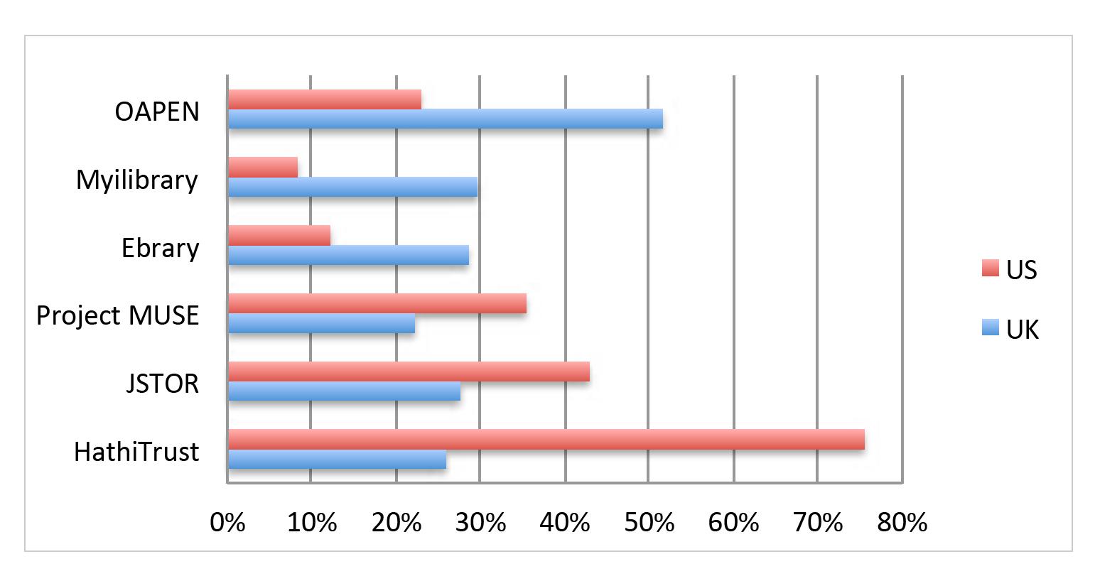 The survey was also made available to UK libraries via the Jisc Collections website and promoted through Listservs and via Twitter. Research Libraries UK (RLUK) emailed its 34 members, encouraging them to participate in the survey. 37 valid responses to the UK library survey were received.