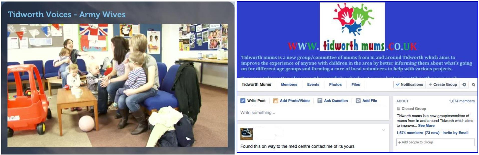 Screen grabs from Tidworth Voices video (left) and Tidworth Mums Facebook Page (right)