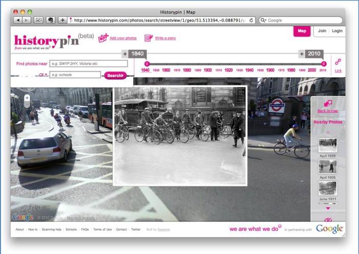 History Pin (http://www.historypin.com/) is an online user-generated archive of historical photos, videos, audio recordings and personal recollections. Using locations and dating the content allows users to “pin” it onto Google Maps. Where Google Street View is available, users can overlay historical photographs and compare them with the contemporary location. In this way, History Pin has the potential of turning Google Maps into a worldwide, communal, open-air “memory place”. It should be noted that the method of loci (a way of memorising things by visualising them in locations) is quite effective for many people.