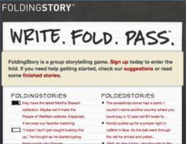 Creating a digital story with strong interactive elements sometimes necessitates tools that are free (or, from another perspective, void) of scheme, with no specific graphical environment and offer users the freedom to upload the material and to decide on the way that it is going to be displayed. Folding Story (http://foldingstory.com/) is such a platform. It functions as a group storytelling game where players write one line of a story, fold the paper, and pass it on to the next player. It is a digital version of the classic classroom collaboration story game, in which participants take turns to add the next line to a story until the whole story is complete. However, each player can only see the last couple of lines, and hence can have no idea about how the story has been going before that point. This activity takes place on the Folding Story platform and users can read finished stories (fold stories) or participate in unfinished ones.