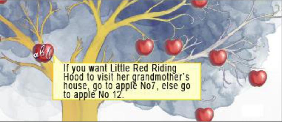 For a linear story to be created with the current version of Milia platform, AppleTree storywriters can number story elements to define the sequence of content, and visitors need to search the elements one by one to find out the predefined sequence. The same description field can be used to create a story with a different structure, for example a nodal story, where an AppleTree element may point to different elements, depending on a viewer’s choice (Figure 20).