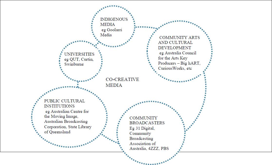 This report describes the outcomes of research into the formal and informal networks of cultural producers who facilitate the generation of co-creative media (CCM) in Australia. Our overview of this field of practice highlights the critical role of the following five arts, media and education sectors: