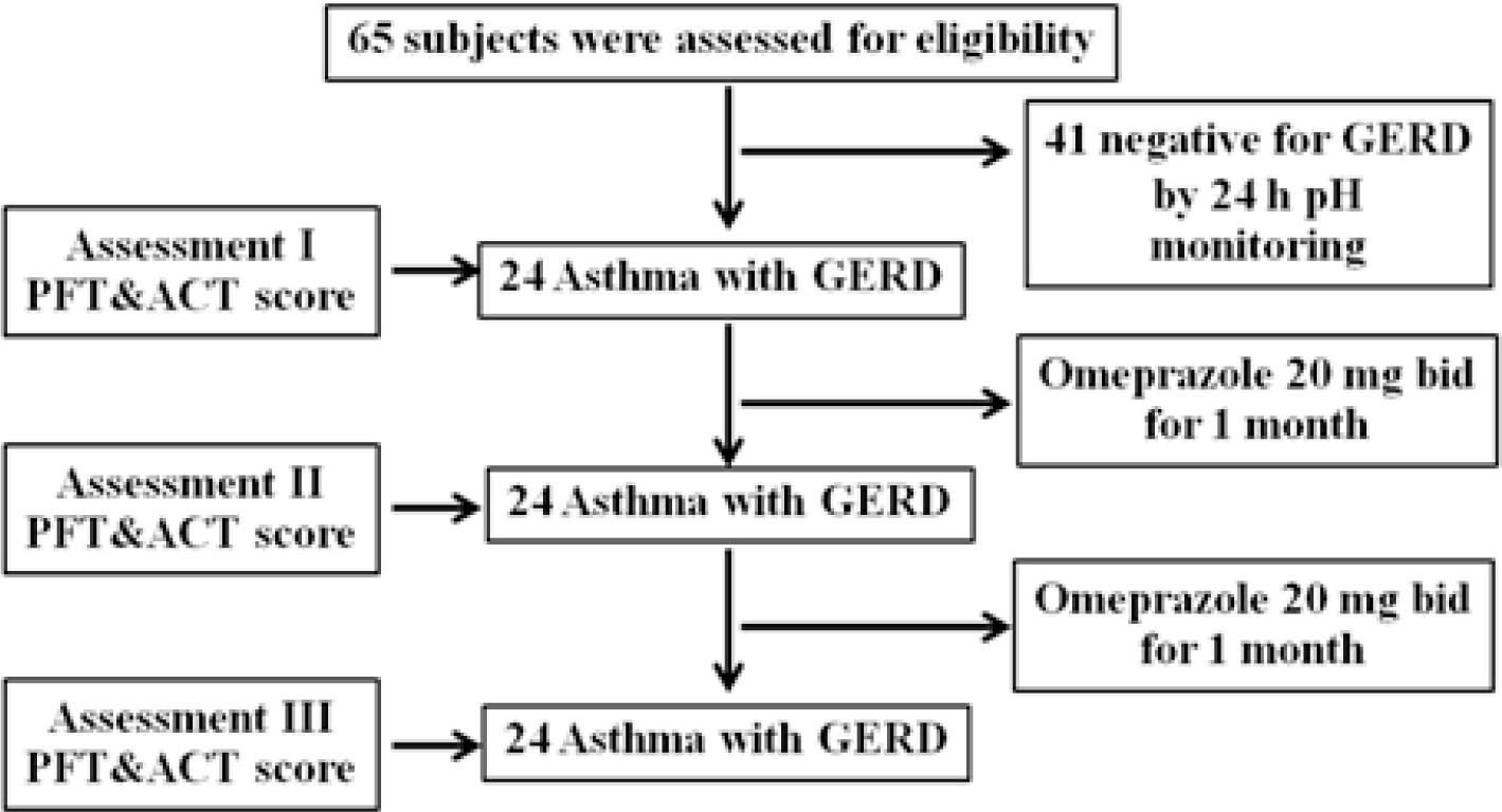 Pulmonary function and ACT score after treatment 1 and 2 months