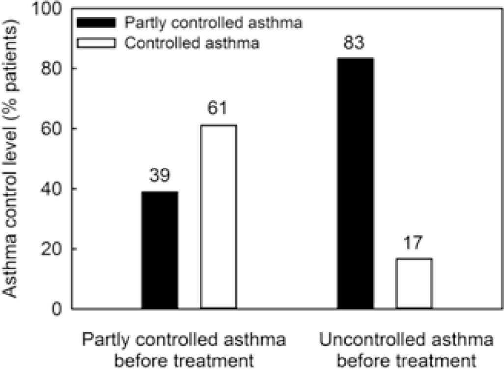 | ACT | 16.36 + 3.97 | 20.82 + 3.30 P < 0.001 vs. baseline, | 23.00 + 1.69 P < 0.001 vs. baseline, |