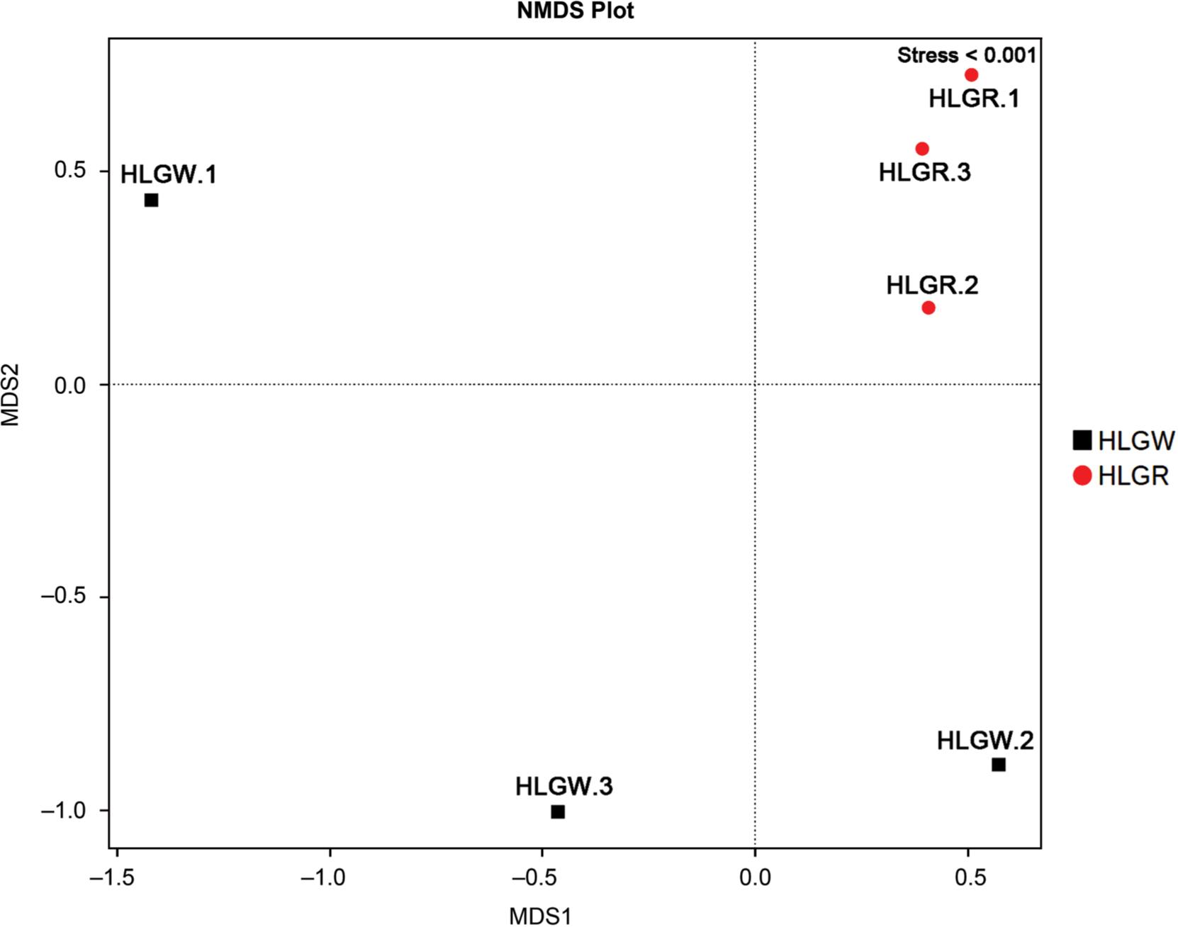 Non-Metric multi-dimensional scaling (NMDS) plot.