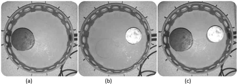 The phantom uses distilled water as medium and (a) insulator, (b) conductor, and (c) insulator-conductor